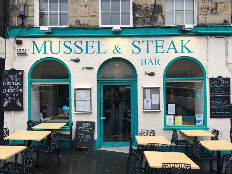The Mussel and Steak Bar (110 Grassmaekt, W Bow, EH1 2HH) Me lo habían recomendado por su menú de mediodía, y la verdad es que estaba muy bien. De primero una masa de hojaldre rellena de haggis y de segundo mejillones en salsa thai acompañado de arroz. Aprox 15 pp (menú mediodía) y 25 pp a la carta.