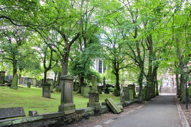 Dentro de Edimburgo hay varios cementerios, donde destacan el Cementerio de Greyfriars, en el cual están enterrados varios personajes famosos de la historia de la ciudad como el abogado George “bloody” Mackenzie (quien es culpable de muchas de las historias fantasmagóricas del lugar) y Greyfriars Bobby, un perrito fiel que se hizo muy popular por vigilar la tumba de su amo hasta su muerte.