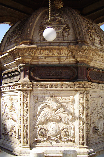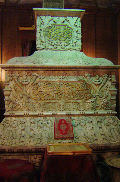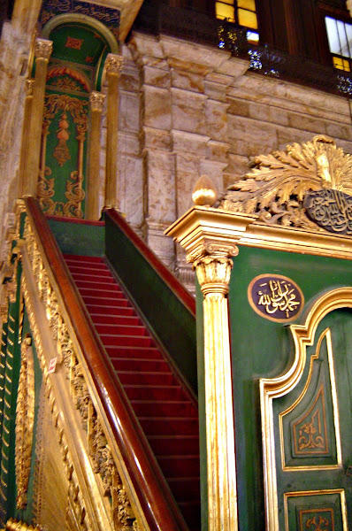 Decorada con mosaicos y piedras preciosas, esta estancia alberga el minbar o púlpito y la tumba de Mehmet Alí, de mármol blanco cincelado y piedras preciosas.