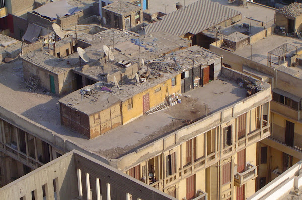 Hoy, El Cairo combina grandiosos edificios decadentes con calles abarrotadas de construcciones que parecen sostener un equilibrio imposible, grandes parques y azoteas repletas de escombros, un horizonte casi infinito de casas, hoteles y edificios en un frenesí constructor que parece no terminar nunca.