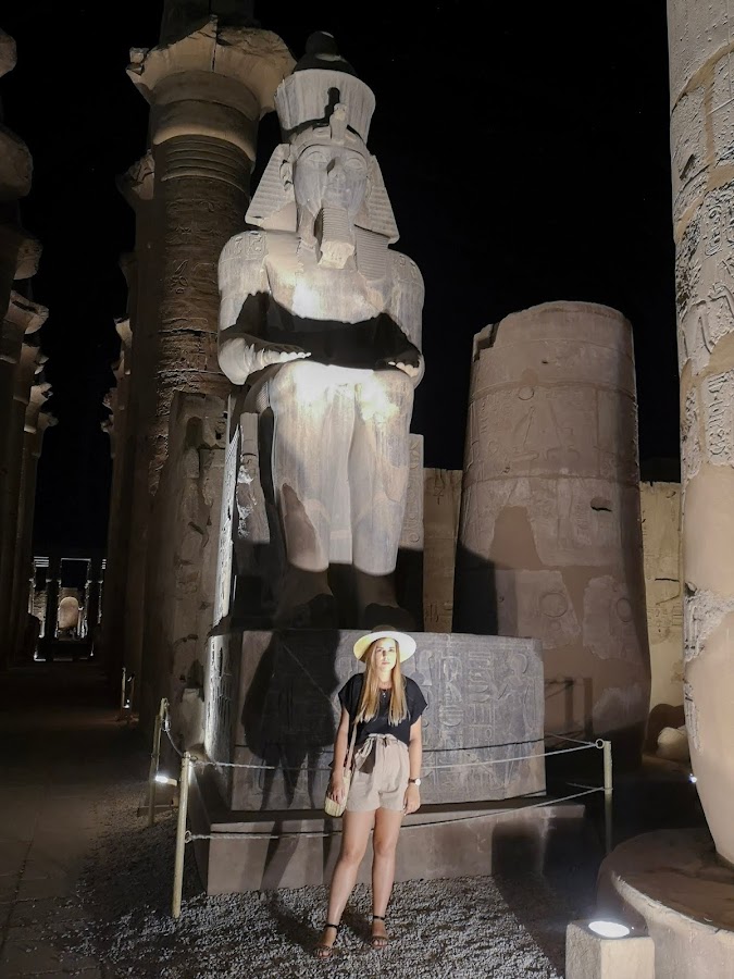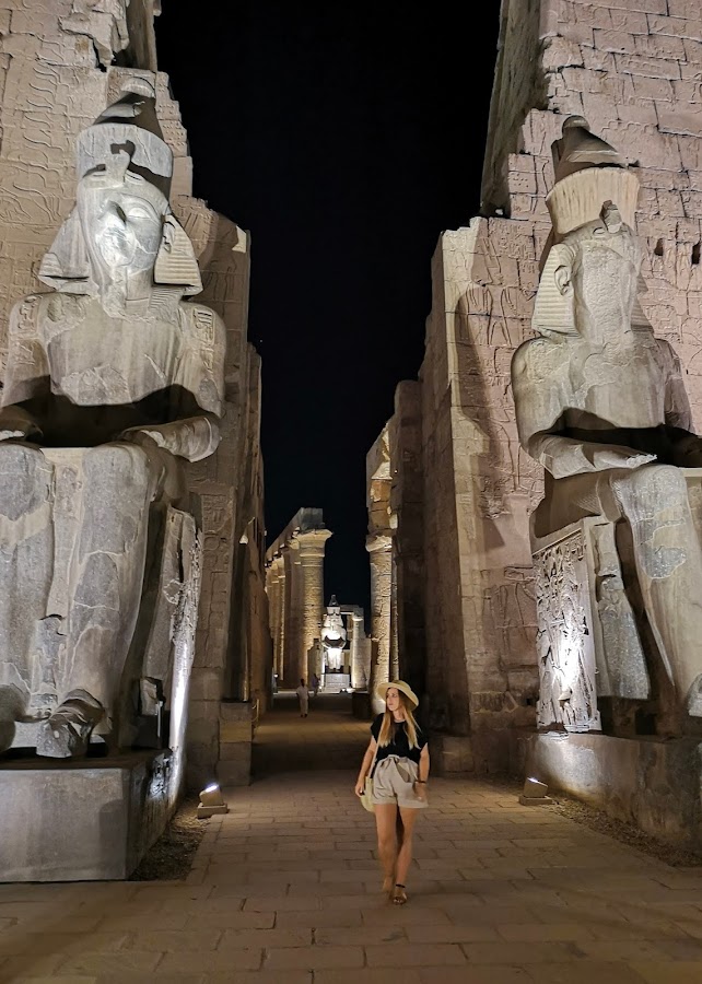 Sobre las 7 de la tarde llegamos al templo de Luxor (100 libras egipcias). Está en medio de la ciudad y te recomiendan verlo de noche porque es impresionante.