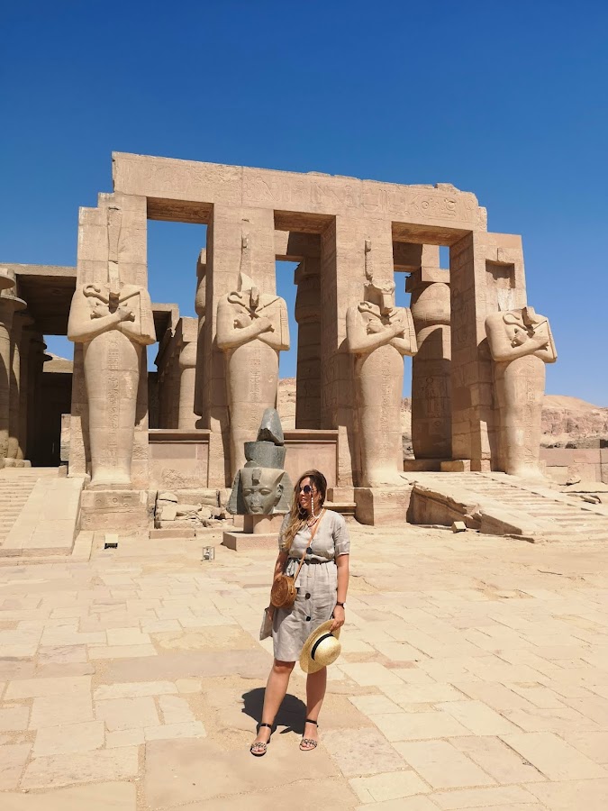 Nuestra primera visita del día fue el Ramesseum (60 libras egipcias) o templo funerario de Ramses II (Medinet Habu). Un templo precioso que merece muchísimo la pena visitar y del que me enamoré nada mas llegar.