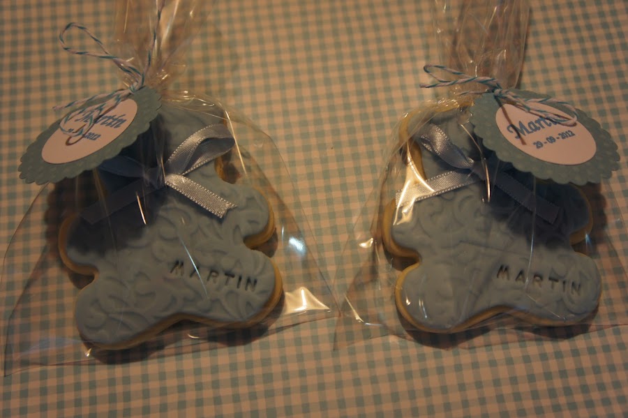 Las fotos que os traigo hoy son las galletas que entregaron como detalle en el bautizo de Martín. El bautizo se celebró el pasado 29 de Septiembre en Verín y, a pesar de que esa semana el tiempo estuvo regular, al final ese sábado hizo un día perfecto para que todo saliese genial.