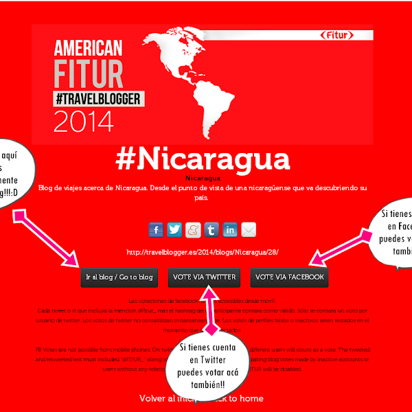 El 14 de noviembre en este post acá les explicaba que estaba compitiendo en el #TravelBlogger que celebra Fitur por 2 año consecutivo y que necesitaba su apoyo para que el jurado tomara en cuenta este blog, pues hoy la buena noticia es que NUEVAMENTE he ganado el premio a Mejor Blog de Turismo de Nicaragua gracias al apoyo de cada uno de los votantes. Ahora la cosa se ha puesto más interesante, ...