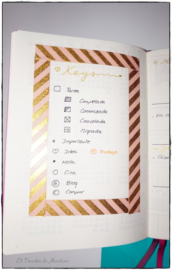 Los Bullet Journal suelen ser muy artísticos, se decoran bastante, con lettering, dibujos, estampaciones etc, si buscáis en pinterest o instagram veréis que la gente tiene Bullets increíbles, pero en mi caso no tengo buena mano y carezco del tiempo necesario, así que el mío es más bien sencillito, lo decoro un poco con washi tape y poco más, eso ya va según gustos y necesidades.