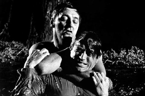 Max Cady (Robert Mitchum) y Sam (Gregory Peck) en un lance de "El cabo del terror"
