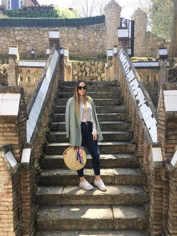 El resto del look muy sencillo y en mi rollo. Jeans, converse y bolso de rafia.