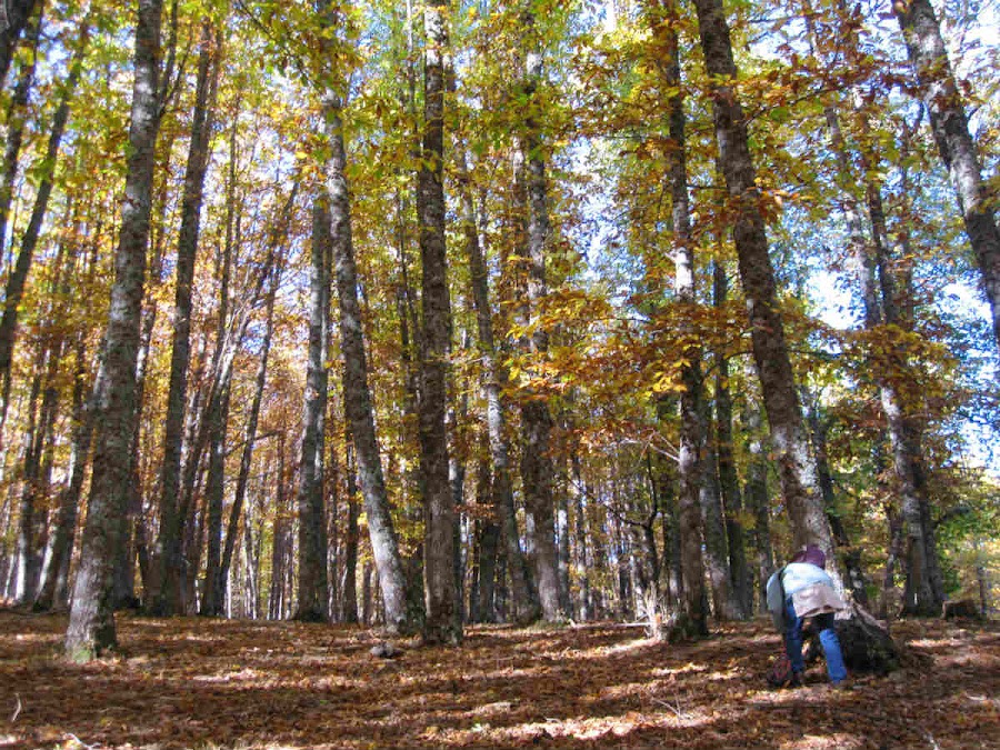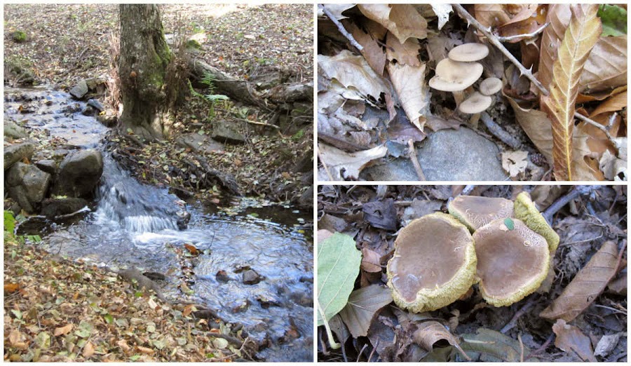 Tras este grato encuentro, continuamos bajando. En esta ocasión nos salimos del camino y nos acercamos hasta el riachuelo donde, al regazo de su humedad, descubrimos una gran diversidad de setas mientras seguimos haciendo acopio de algunas castañas más.