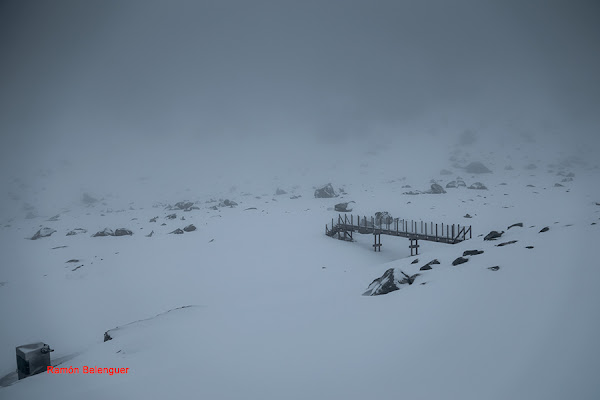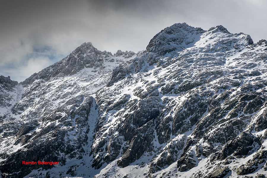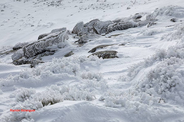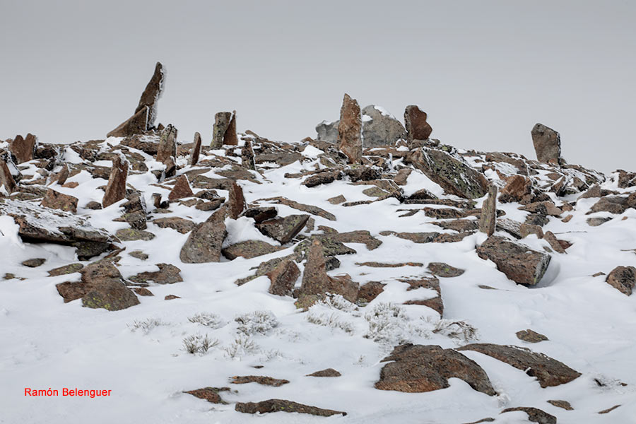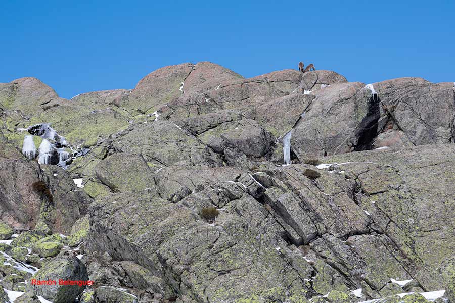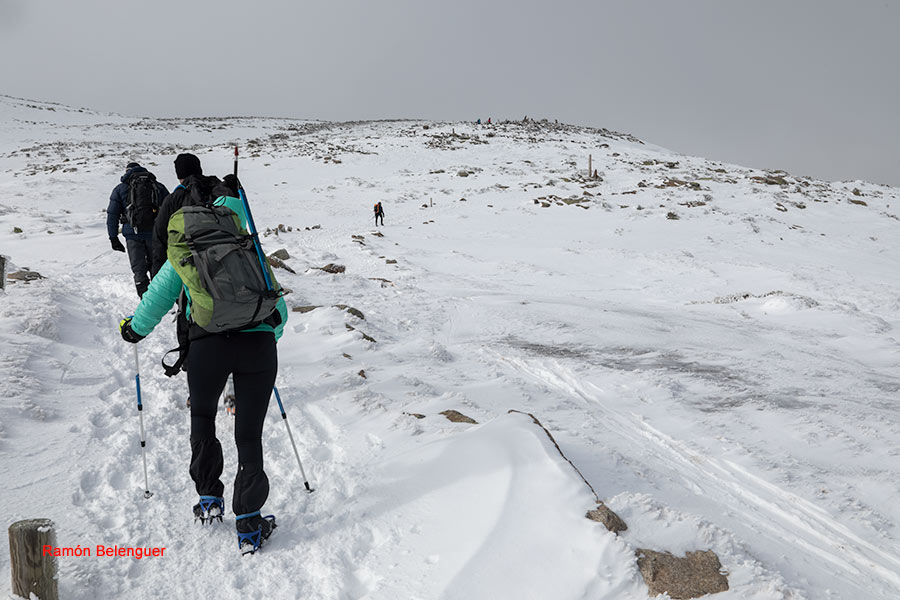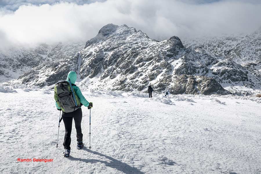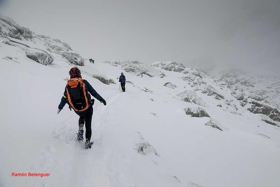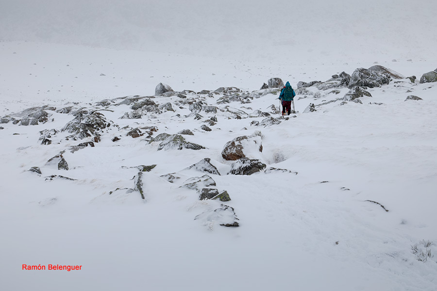 En los Barrerones, alcanzamos la parte más alta del recorrido (2.170 m.)donde nos encontramos con una espectacular panorámica del Circo de Gredos con la Laguna Grande en el fondo, de izquierda a derecha, de Este a Oeste, podemos identificar al Morezón (2358), el cuchillar de Cerraillos, el perro que fuma (parece una cara de un perro de perfil con una pipa en el morro), los tres hermanitos, el peñón del casquerazo (2467), el cuchillar de las Navajas, el Pico Almanzor y el Ameal de Pablo. la Galana (2568) y el Venteadero. A partir de aquí la senda desciende hacia el circo pasando por la fuente de los Barrerones ". Al hacerla en invernal y estar helada la atravesamos hacia el refugio de Elola, sino la bordearíamos por la izquierda. Si el nivel de la laguna está muy elevado hay un paso equipado en la zona más problemática.
