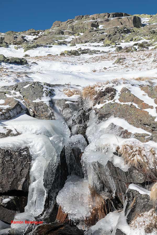 Atravesamos el Prado de las Pozas y cruzamos el río a través de un puente de hormigón. A partir de aquí el camino se estrecha convirtiéndose en senda y se empina un poco más trazando algunos zig-zags entre las rocas para dejarnos en una zona más elevada conocida como Los Barrerones, después de pasar junto a la “Fuente de los Covadores”.