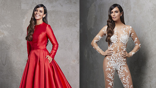Durante la primera parte de la noche, la popular presentadora lució un vestido de estilo "princesa" de color rojo y poco más tarde dejaba al descubierto la segunda pieza de su vestimenta, un mono ajustado con transparencias y bordados blancos diseñado por Hervé Moreau, director artístico de Pronovias.