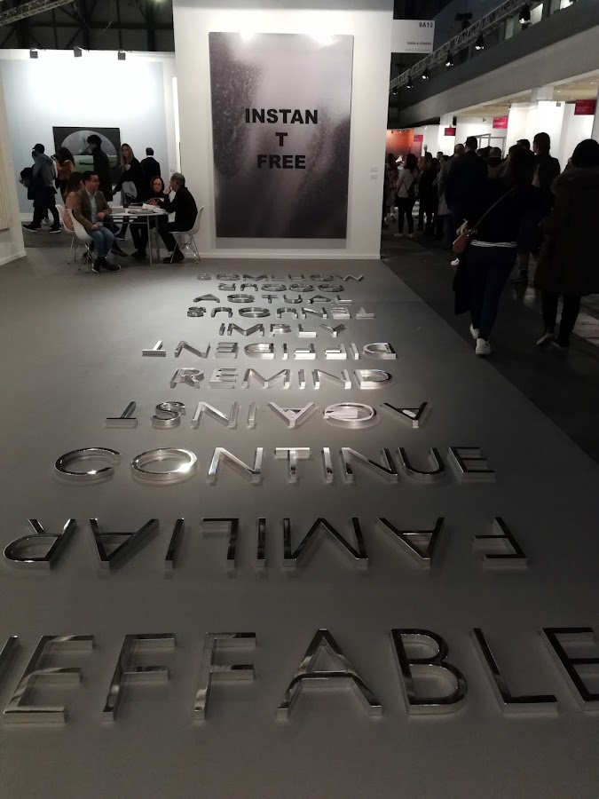 Este año la Feria no tenía un tema central, un país, ni una región, sino un concepto: El Futuro; un programa expositivo y con un diseño único, que abarca galerías y artistas de varias generaciones y zonas geográficas, aunque, después de visitar todas las ferias, resulta un poco aburrido ver como muchos artistas se repiten en todas, las galerías no apuestan por al menos intentar conocer otros artistas, cuya obra llena sus estudios y no desmerecería estar en estas ferias y que desgraciadamente sólo ven amigos y familiares ya que ninguna galería les recibe, porque, que una galería mire tu obra, es tan difícil como una agencia de modelos reciba a una modelo de menos de 175.