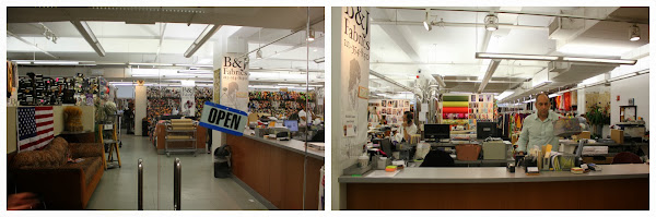 B&J Fabrics ofrece también una gran variedad de tela: telas de algodón tipo Liberty of London, desde 37$ para arriba; tejidos delicados como brocados, lentejuelas, organza, seda o encajes que pueden llegar a costar hasta 1.000$ la yarda, telas de terciopelo, tipo chanel, cuero sintético.... Un lugar ideal para los que buscan tejidos de alta gama, para vestidos de fiesta o de alta costura. Sin duda alguna, es la tienda de telas que más me ha impresionado, tan bien organizada y tanta inspiración en las paredes y en los pasillos que si hubiese podido me hubiese quedado toda la tarde contemplando esas telas tan exquisitas!!!