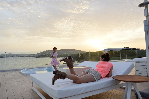 Nos faltan pocos minutos para marchar, pero antes subimos a la azotea para ver atardecer, la verdad que en Ibiza da igual donde estés porque sus atardeceres son maravillosos como en Cala Comte, pero vamos que hasta en un camping, pero claro, el factor cama de día y jacuzzi en la terracita acompañado de música ambiente y un servicio que se preocupa a todas horas de si te falta algo ¡Hay! que lujo, que alboroto...