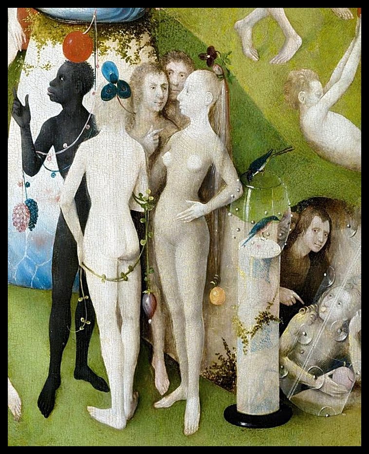 Otro elemento clave de la tabla es la indiferenciación sexual. Apenas distinguimos a los hombres de las mujeres. Los únicos signos de diferenciación entre los dos sexos son los pechos femeninos (nunca demasiado voluptuosos) y los genitales masculinos. Podría ser que el Bosco buscara así querer mostrar que toda la humanidad estaba implicada en el pecado.