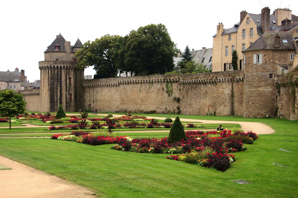 Torre Joliette y Connétable. Los Jardines de Remparts es un bonito paseo extramuros entre flores en el que puedes ir admirando el caso antiguo de Vannes, una de las villas mejor conservadas de Bretaña