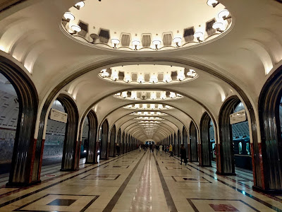 El metro moscovita tiene anchísimas escaleras de granito, paredes de 20 tipos distintos de mármol traído de los Urales, Georgia, Armenia, Ucrania, Crimea o Uzbekistán, además de mosaicos, frescos, esculturas de piedra o bronce, cerámicas decorativas, arcos que hacen olvidar el ruido de las vías, incluso plataformas tan extensas que en ellas se celebran hasta conciertos.