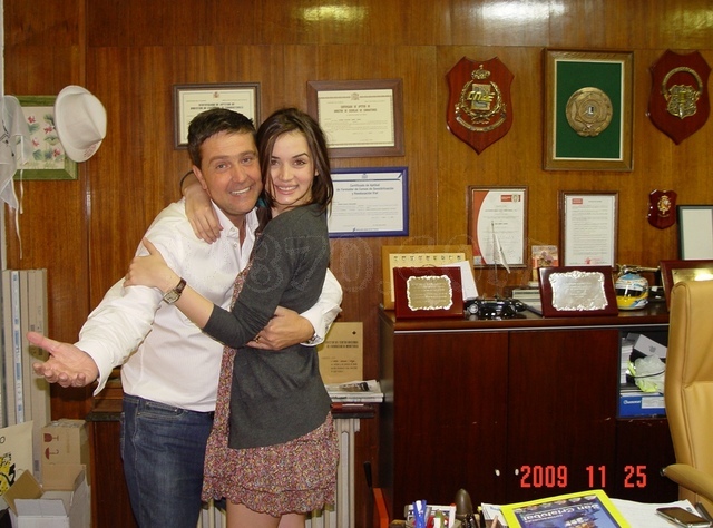 Rafa Lozano, dueño de la autoescuela, con la actriz Amaia Salamanca