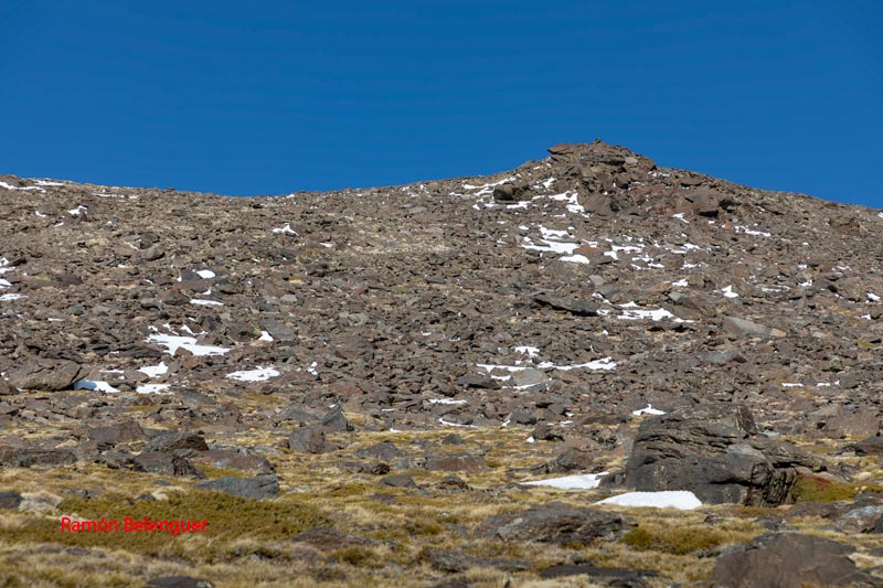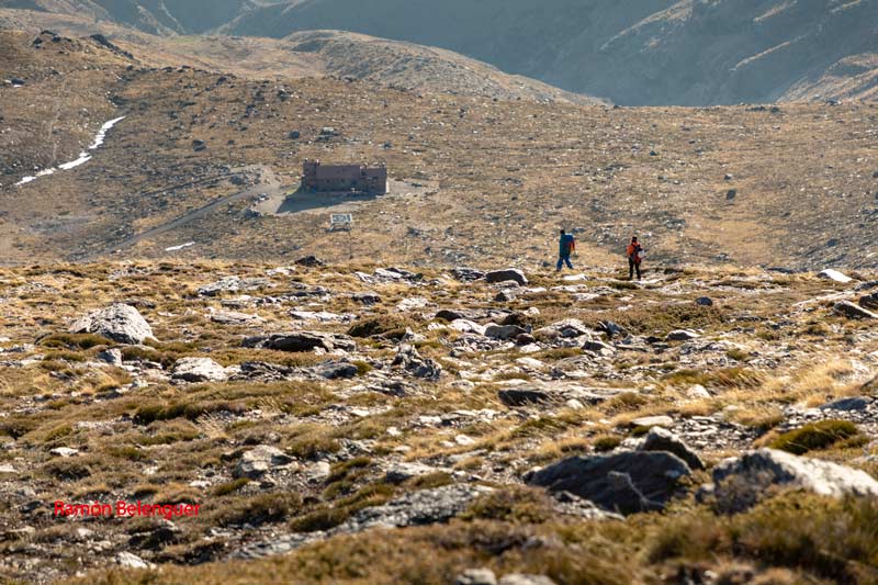 desde el Mulhacén II bajada empinada en línea recta hasta el refugio