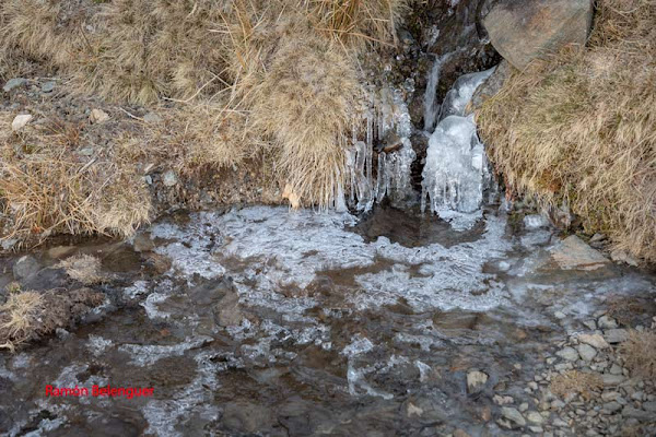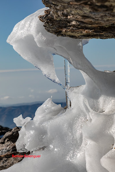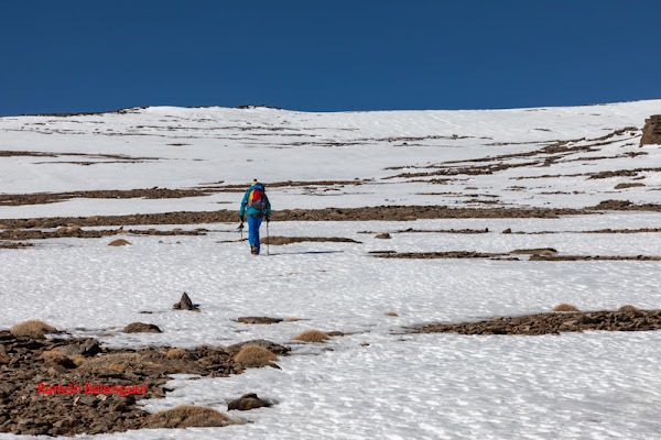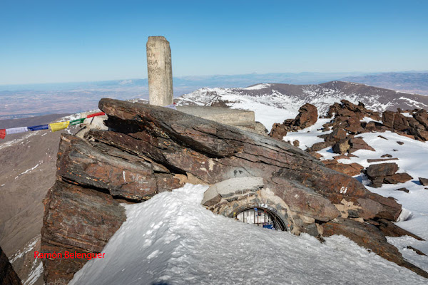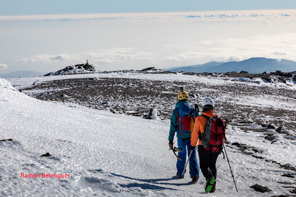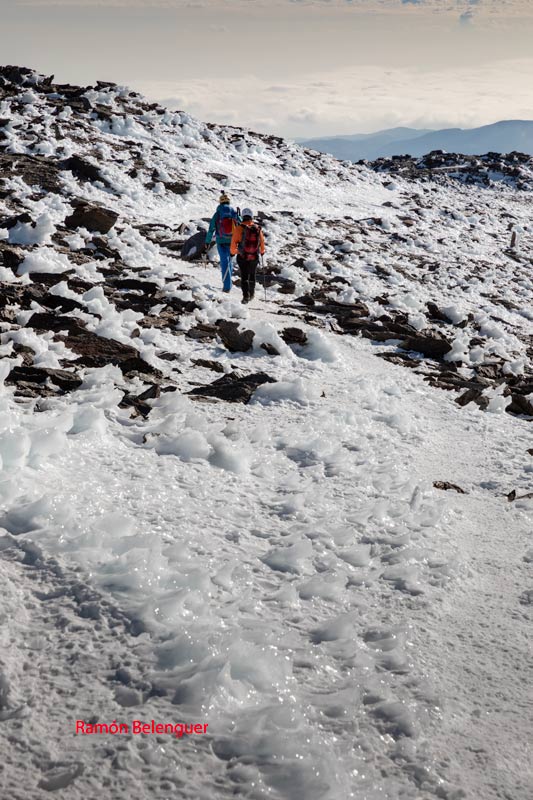 llegando a la cima, poca nieve, pero salvo la senda el resto hielo