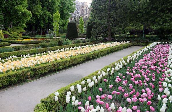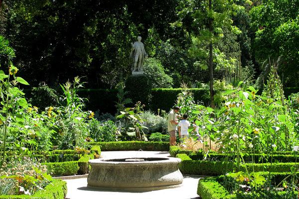 Especialmente atractivas son las rosas silvestres de muchos matices y variedades. También el Jardín Romántico Clásico con un estanque de patos. El clima agradable de Madrid le permite estar abierto todo el año. Los lugareños lo utilizan como un lugar relajante para el almuerzo. Y los visitantes lo recorren como parte de su itinerario de turismo.