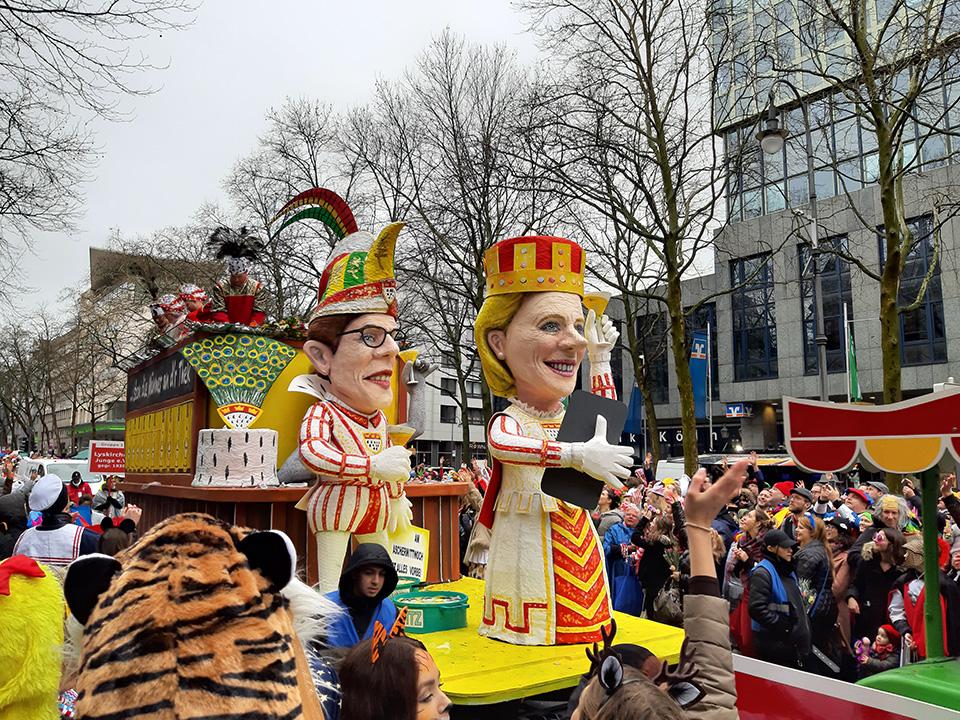 El Rosenmontag de Colonia es uno de los más populares de Alemania. En el desfile se intercalan las carrozas cargadas de color y las que hacen alusión al panorama político actual.
