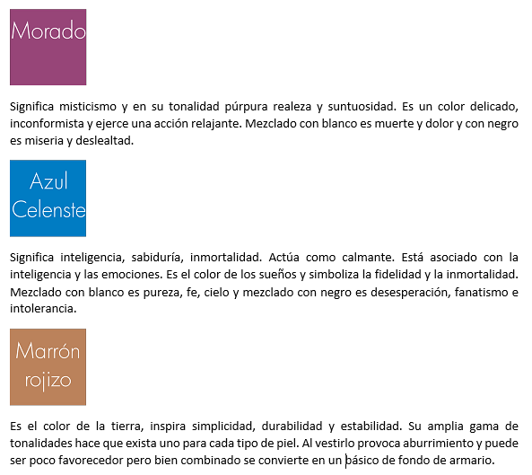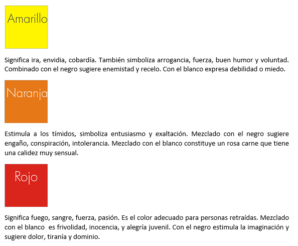A partir de aquí cada color tiene un significado, conociéndolos podréis elegir el color que os ponéis en cada ocasión según la impresión que queráis transmitir.