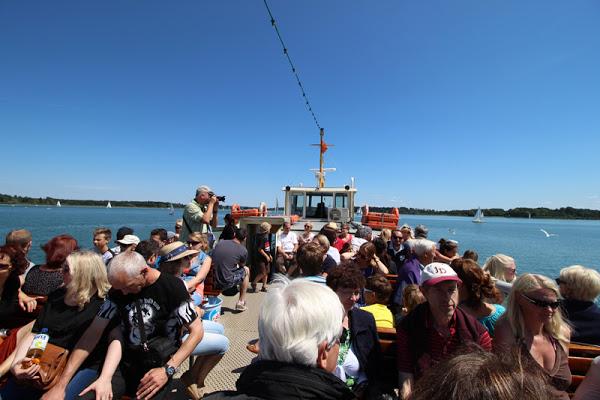 La localidad dede la que parten los barcos, y que es además accesible también en tren, es Prien, aunque también se puede tomar en embarcaderos de otras localidades. Un tren de carbón recorre la distancia entre la estación de tren de Prien y el embarcadero desde el que parten todos los barcos que recorren el lago. Nosotros decidimos ir en coche, lo cual también es muy recomendable, dado la gran cantidad de zonas de aparcamiento que hay alrededor del puerto.