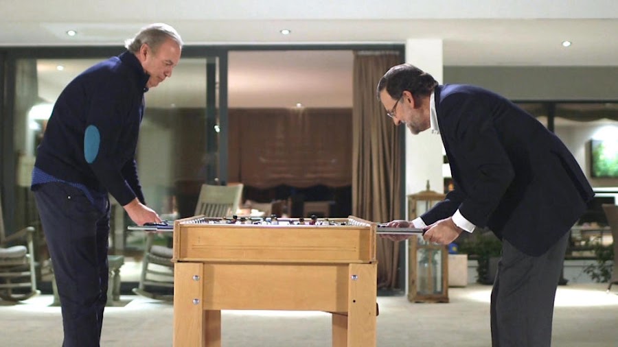 Bertín Osborne jugando al futbolín con Mariano Rajoy