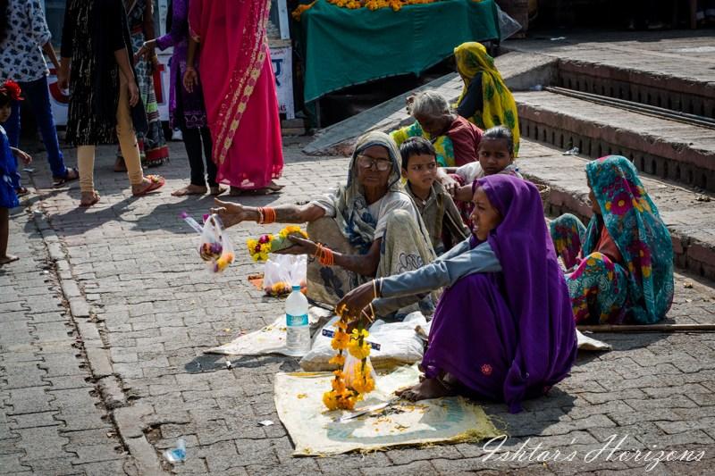 En todo el lugar no te cansas de ver a los vendedores de flores para las ofrendas, sadhus, gente pidiendo limosna a las puertas del templo, puestos…
