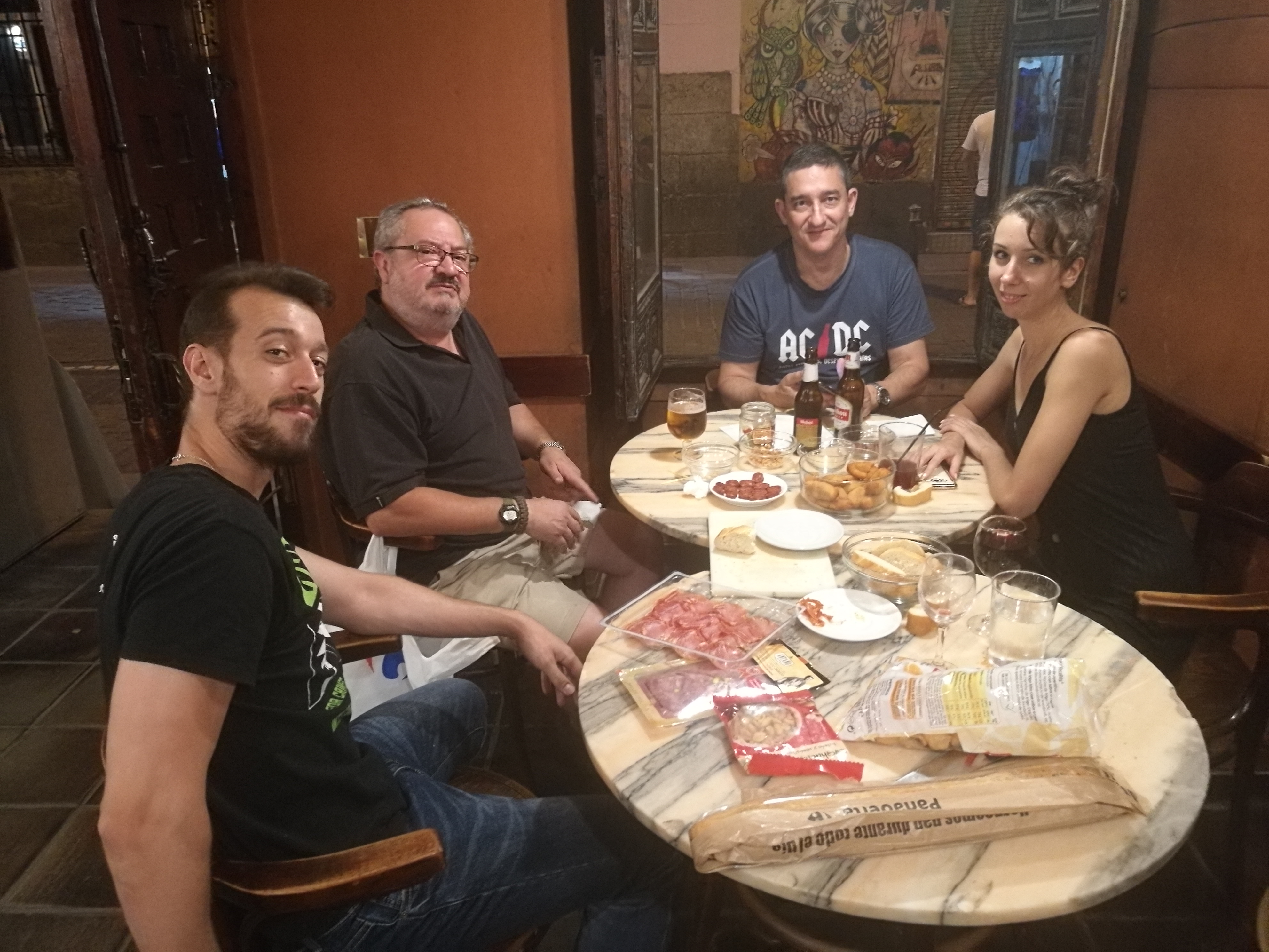 En Madrid hubo aperitivo, en una taberna muy chula de aquí, del barrio de Malasaña. Su nombre "La Colmada", situada en la calle Espiritu Santo 19. De vinos, cerves y latas de conservas estupendas. Muy acogedor. Seguro que vuelvo. Tuve la suerte de compartir cañas con Antonio y Sergio.