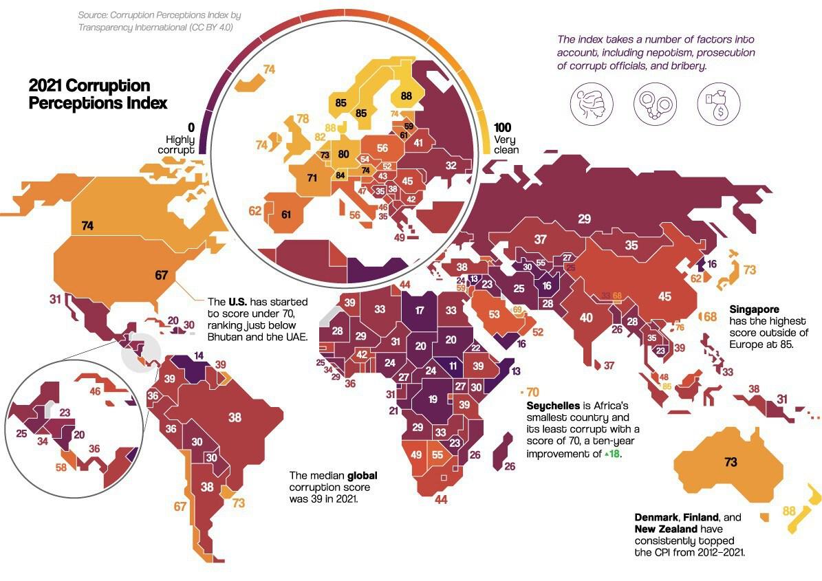 Transparencia Internacional ha estado tratando de cuantificar la corrupción en el mundo durante años, y su último informe sobre la corrupción en todos los países ofrece una amplia visión general del problema.