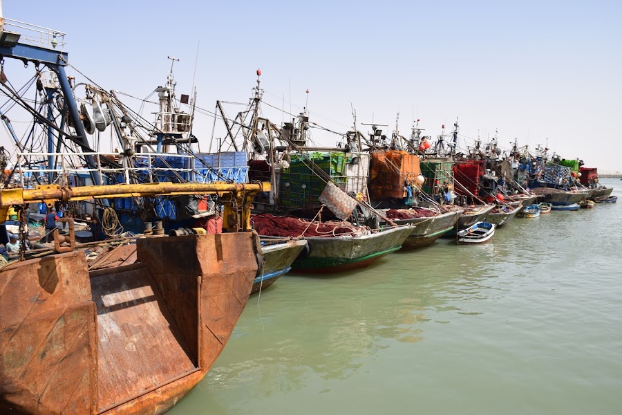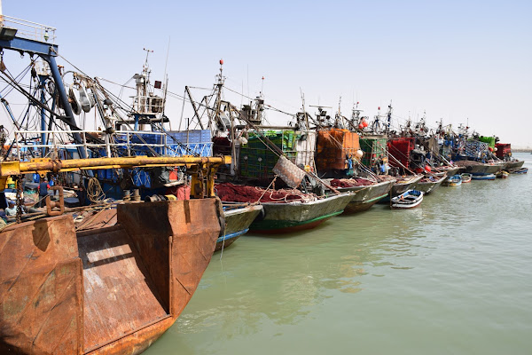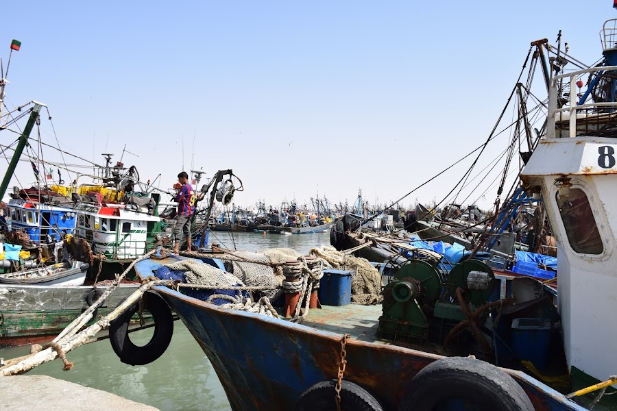 Por eso nos pareció un poco de ficción llegar a El Marsa y ver la enorme flota pesquera amarrada, con los barcos enganchados unos a otros como pasarelas al mar, mientras se mecían con el suave vaivén de la corriente.