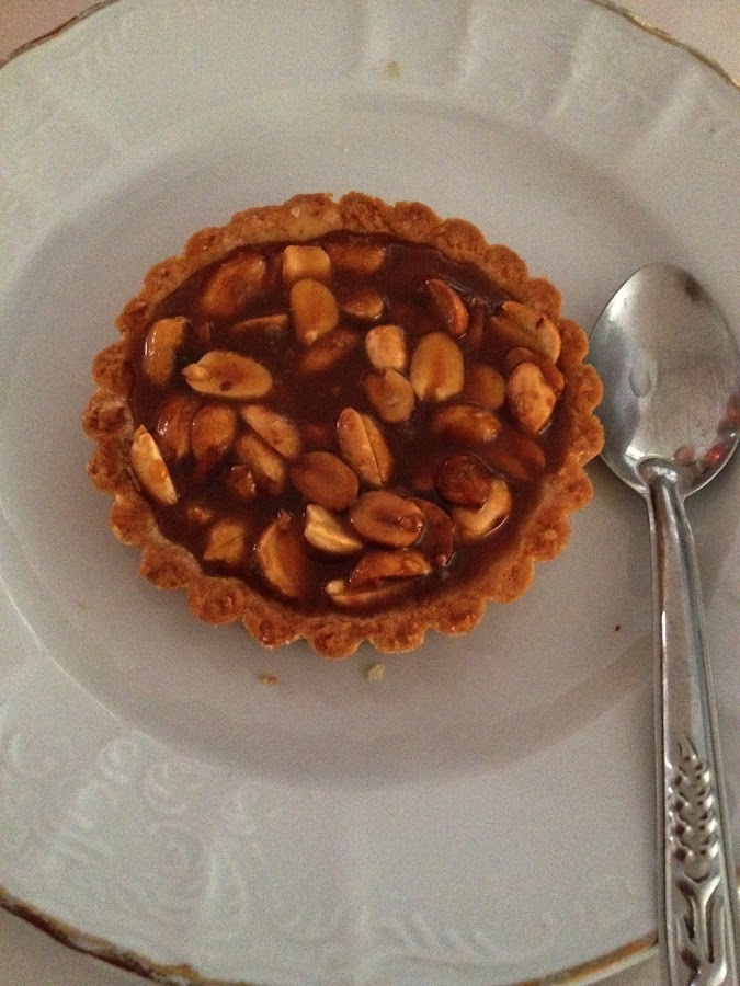 De postre una deliciosa tartaleta de cacahuete y caramelo, con un sabor exacto al de una famosa chocolatina americana.