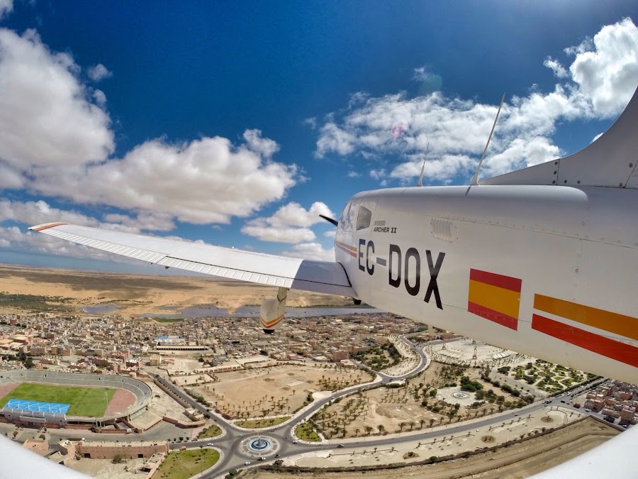 Tras una preparación exhaustiva del aeroplano, salimos hacia África, elevándonos hasta los 2.600 metros y pasando sobre la isla de Gran Canaria y el sur de Fuerteventura. Nos dieron "permiso" para entrar en el espacio aéreo marroquí en vuelo, ya que Stan había intentado pedir autorización semanas antes de la salida sin respuesta.