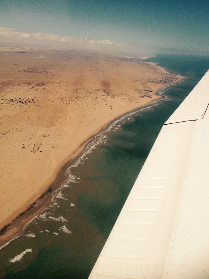 Pero bueno, allí estábamos, sobrevolando la costa marroquí o saharahui, depende de quién lea esto, con el contraste del azul del mar y de la dorada arena.