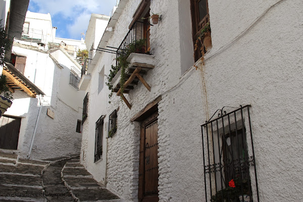 Aunque en esta ocasión sólo estuvimos tres días, estuvieron muy bien aprovechados y con tiempo para todo. Como siempre hacemos, nos alojamos en el Hostal Moraima de Capileira; se trata de un establecimiento familiar, sencillo, pero con una limpieza y un trato maravilloso en el que desde el primer momento uno se siente como en casa. Todo en este pueblo es agradable: el olor a pan recién hecho del horno de Luisa; sentarse en la terracita del bar El Tilo (¡como me gusta este bar!) y escuchar el agua brotar del pilón o delante de su chimenea cuando el frio aprieta; caminar entre nogales, a paso tranquilo, hasta el puente de La Cebadilla...aunque si tuviese que elegir sólo uno me quedaría sin duda con los paseos nocturnos acompañada de mi hija (otro enamorada de este lugar) entre cuestas empinadas y silenciosas hasta llegar al Mentidero, para una vez allí observar la maravillosa estampa de Bubión y Pampaneira iluminadas.