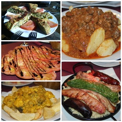Después de abandonar esta bodega, apenas unos pasos más adelante, uno se topa con el que es mi restaurante favorito: La Bodega-Asador El Lagar. El local en sí mismo tiene un encanto maravilloso, la forma en la que te hacen sentir sus propietarios es como sentirse en casa y la comida que allí puede degustarse es sencillamente maravillosa. Raciones generosísimas de cocina tradicional, ese que se elabora sin prisas, con fidelidad a los recetarios de antaño y que te hace disfrutar en cada bocado. Nosotros en esta ocasión optamos por tortilla de vegetales (un obsequio de la casa nada más sentarnos), pollo de la abuela, jabalí en salsa (para chuparse los dedos), migas a la brasa y una ensalada de tomate "aliñao" ecológico de temporada.
