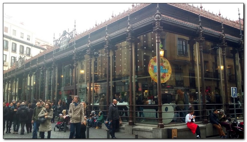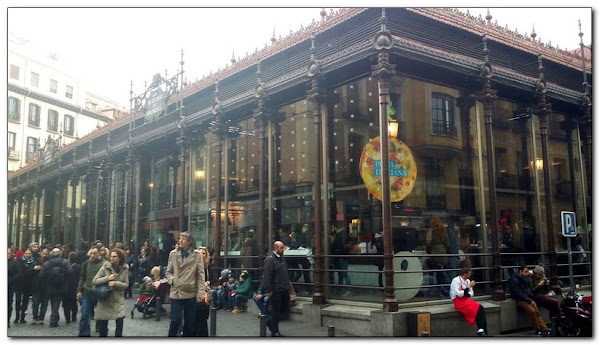 Necesitábamos recobrar fuerza y se nos ocurrió irnos al "Mercado San Miguel", sitio muy visitado en Madrid, por tanto siempre esta a tope, perfecto para comer y conocer gente, muchaaaa gente☺eso si te recomiendo que vayas sobre las 12 pm, porque si comes con horario español dudo que pilles sitio, cosa que nos pasó.