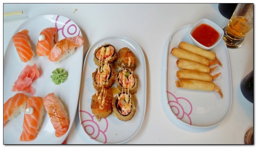 Por tanto optamos por el plan B, caminar un poco mas y comer lejos del bullicio y nos fuimos a comer Sushi en el MISS Sushi Santa Ana, sitio recomendado si te gusta este tipo de comida... ufff que rico estaba todo.