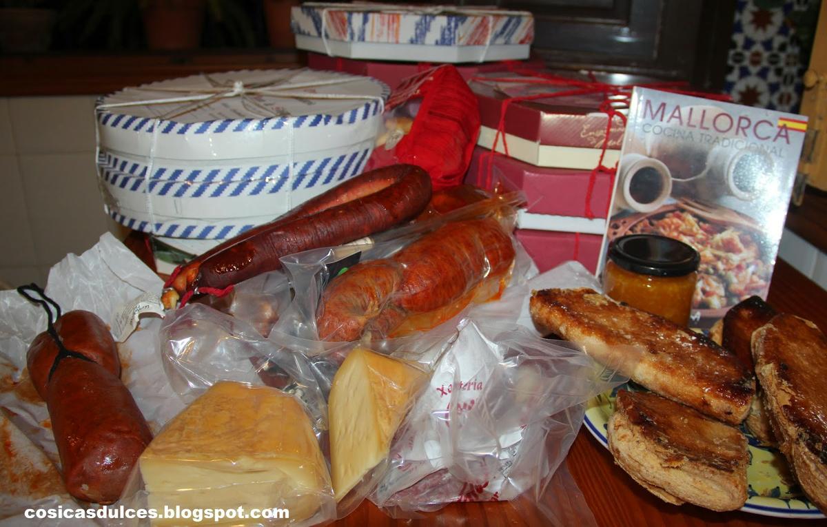Y aquí os dejo, como hago siempre una foto de todas las compras que traje a casa (en mi maleta facturada para tal fin jajaja): quesos mallorquines, sobrasadas artesanas, camaiot, longaniza, galletas de Inca, cuartos, ensaimadas, mermelada de naranja de Soller y un sin fin de delicias más que me sirvieron para recordar, ya en casa, mis fabulosos días en Mallorca.