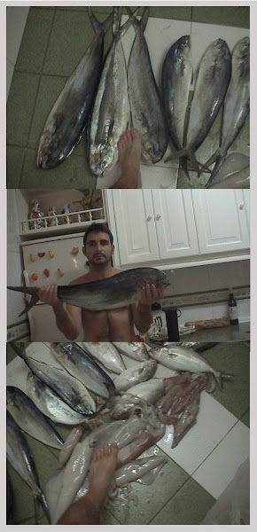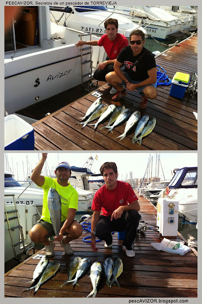 Imágenes del Concurso de Curricán Costero de Alicante (Octubre de 2007). En homenaje a un gran pescador de Guardamar "El Tuso" (arriba a la izquierda), con el que tuve el placer de participar en la embarcación "Mavidanda", y en el que cubrí el reportaje para la revista PESCA A BORDO. Las llampugas eran los peces más abundantes en los concursos de curricán costero hace unos años, junto a las bacoretas, como se observa en las imágenes.