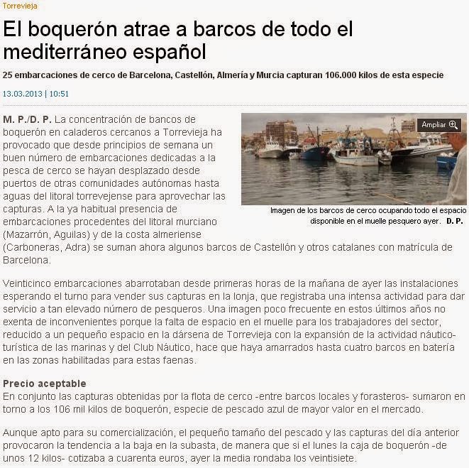 1.- La presencia de numerosos barcos de cerco (traiñas) en la temporada estival en la zona de TORREVIEJA, procedentes de varios puertos base (de las provincias de ALICANTE, MURCIA y ALMERÍA), atraídos por los grandes bancos de boquerones y sardinas y otras especies pelágicas, han traído consigo una reducción drástica de los cardúmenes de las presas naturales de las llampugas en aguas próximas de la plataforma continental. Este hecho puede constatarse en numerosos artículos de prensa que resalta la flota de cerco y el desembarco de pequeñas especies pelágicas en Torrevieja los últimos años.