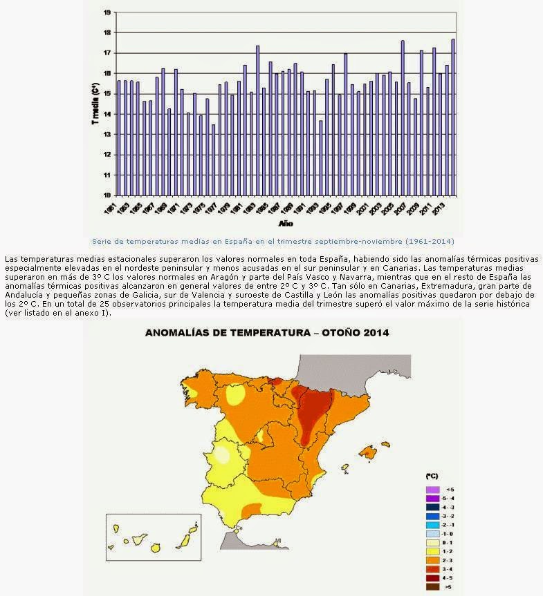 un otoño caluroso con temperaturas medias 2-3 º por encima de lo usual en estas fechas.