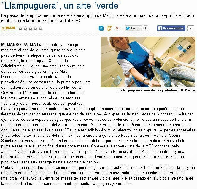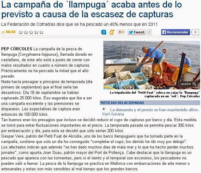 Otro recorte de prensa que acredita la subexplotación comercial de la llampuga: