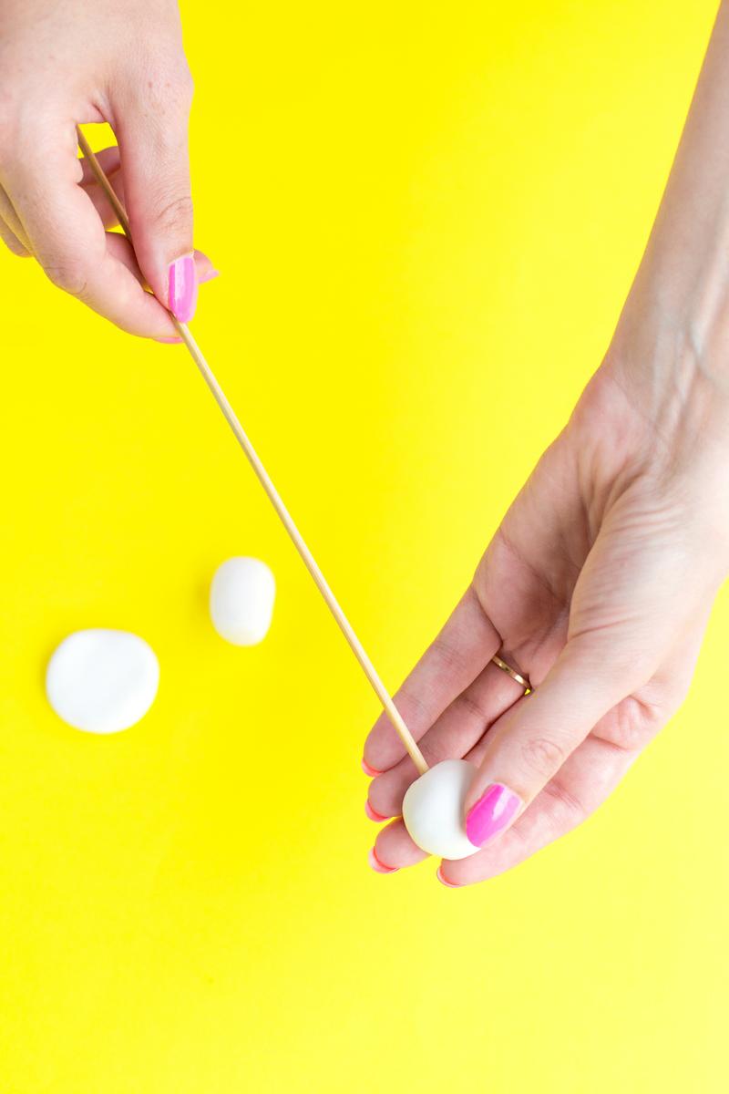 Los materiales necesarios son: palillos para cócteles (brochetas de madera), pasta de modelar y pintura.