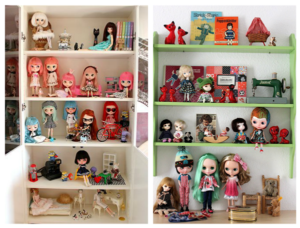 Me paso las horas en pinterest buscando este tipo de imágenes para coger idea de cómo organizar mi estantería kekil, la cual cambio muchísimo. Tengo que hacer algunas fotos de cómo tengo colocadas a mis Blythe ahora, porque las tengo repartidas por la habitación en dos estanterías.