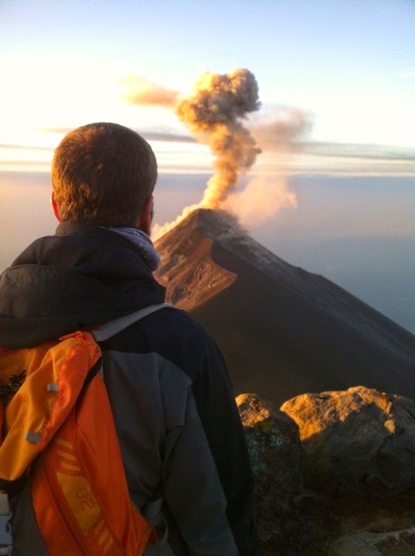 Este día fue una locura, porque a la noche ascendí el Acotenango, la tercera montaña, más alta de Guatemala que nos llevó hasta los 4.000 m de altura. Empezamos la ascensión a las 23:45h. Una mezcla de incertidumbre e inquietud con lo que uno se iba a encontrar era la sensación que reinaba en mi. Tras 4 horas y media de ascensión al Acatenango, que en realidad es un volcán, hicimos cumbre en un momento en el que la temperatura estaba por debajo de los 0 grados. El guía hizo una hoguera que fue muy oportuna para afrontar el frío. Allí esperé a presenciar el amanecer más alucinante que haya visto en mi vida. El momento álgido se dio cuando el volcán de fuego, colindante con el Acatenango, entró en erupción y me regaló una instantánea del sol saliendo de fondo y el volcán escupiendo lava.