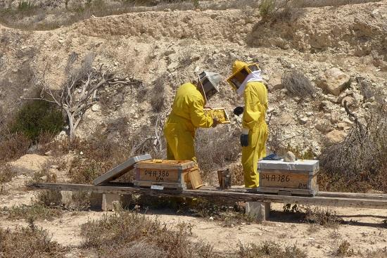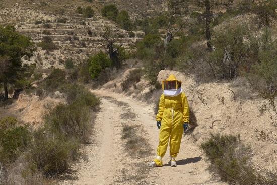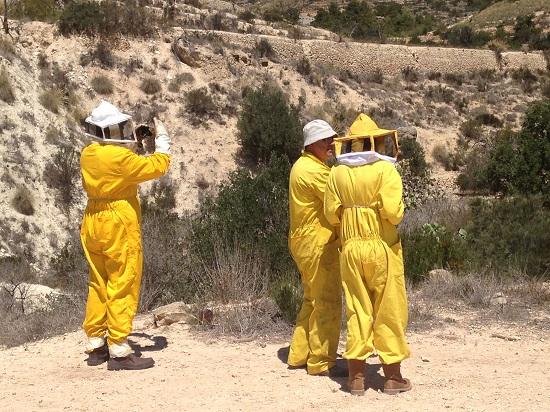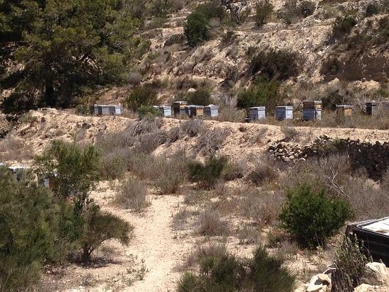 Hace unas semanas mi hermana me llamó por teléfono para decirme que mi sobrina, que estudia bachillerato, necesitaba hacer un trabajo sobre las abejas, su forma de vida y su posible extinción, tema del que se oye hablar bastante últimamente. Ella sabe que el marido de una amiga mía tiene colmenas y se dedica a ellas, por ello me pidió que le preguntara si nos las podría enseñar. Ellos son muy amables, y enseguida accedieron. Pues bien, Pascual, que así se llama el marido de mi amiga, tiene situadas parte de sus colmenas en un pueblo llamado Aigües de Busot, en la montaña alicantina, muy cerca de donde vivo yo, y allí que nos fuimos en una primaveral mañana de mayo.