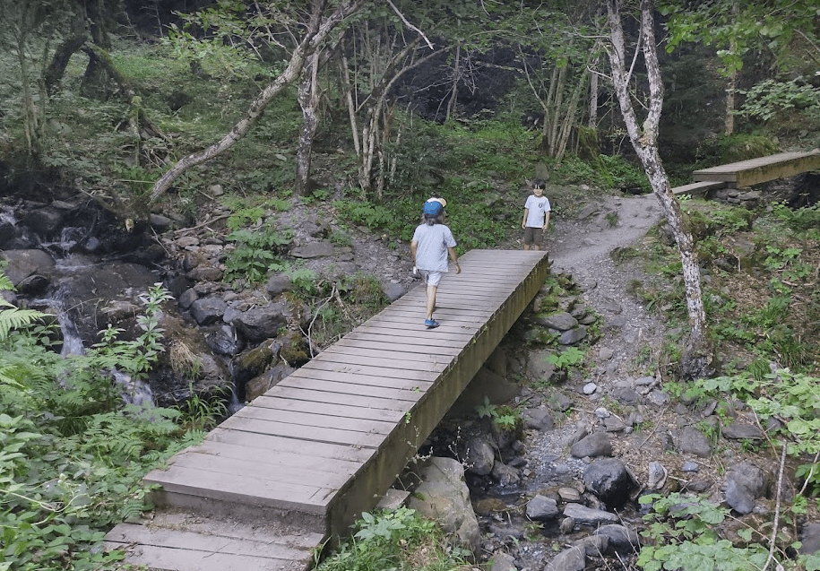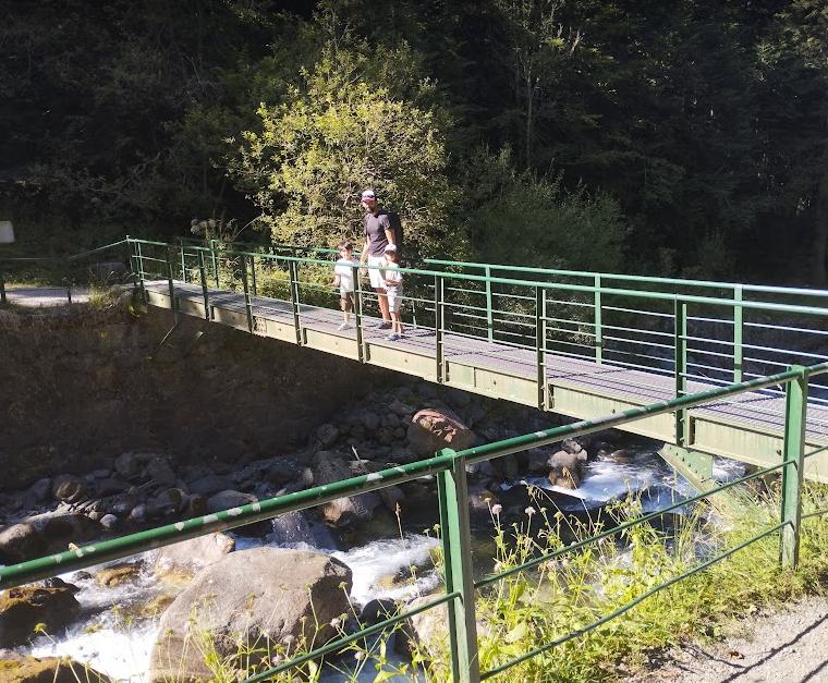 Bajamos unas escaleras, cruzamos un puente y llegamos al Plan de Artiaga de Lin.